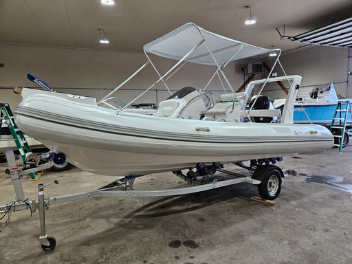 -19 ft long -Hypalon Shell -Teak Flooring -Compass -Sundeck -Fiberglass Foldable Table -4 Deck Lights & 2 Underwater Lights -Hydraulic Steering...